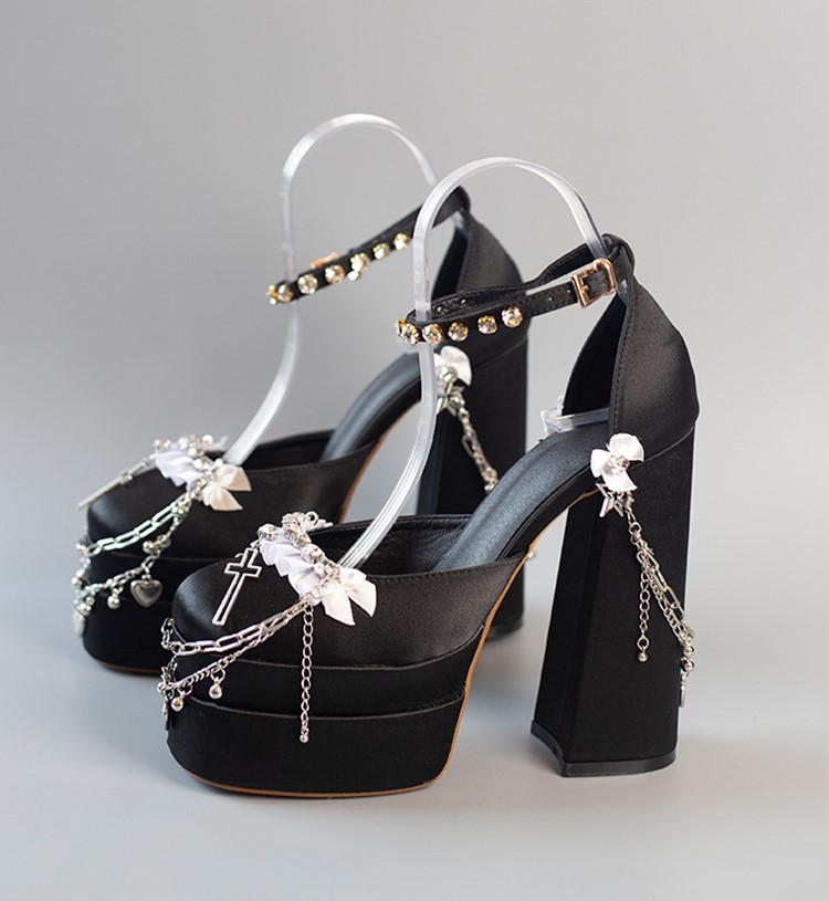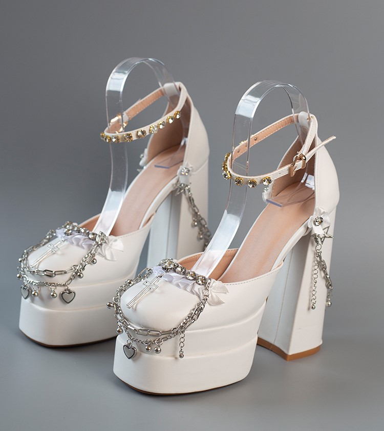 Millennium Hexagram Girls Y2K Gothic Cross Chain Handmade Thick Sole Pink Black White Purple High Heels Shoes
