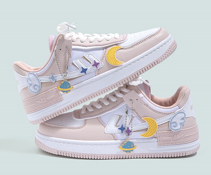 Astronaut Moon Stars Angel Stickers Japanese Causal Girl Sweet Cute Pink White Women Sneakers Sports Running Shoes