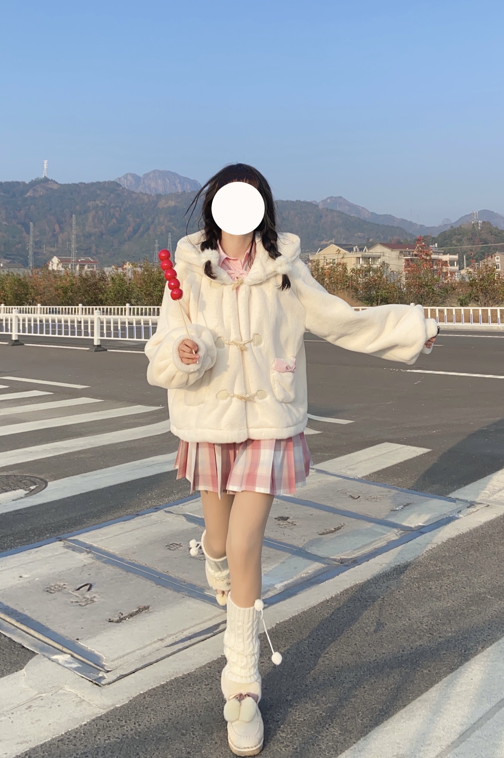 Snow Velvet Rabbit Vanilla Faux Wool Fur Plush Thick Winter White Hooded Coat