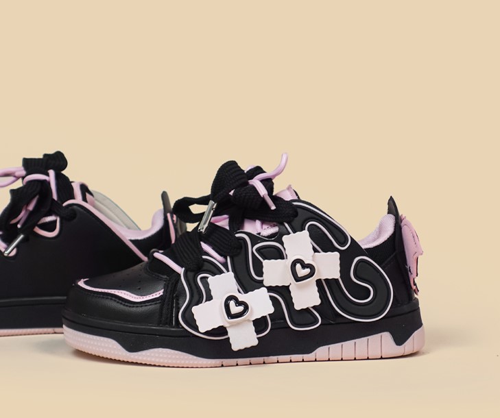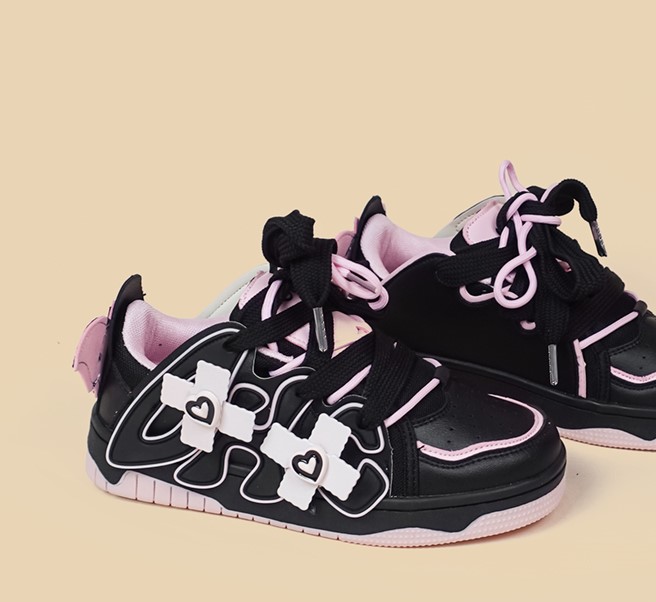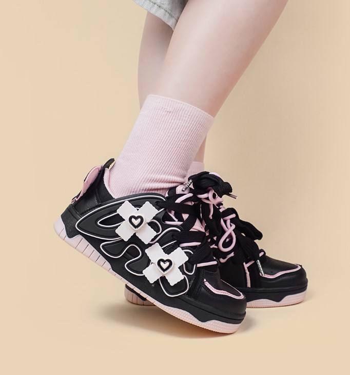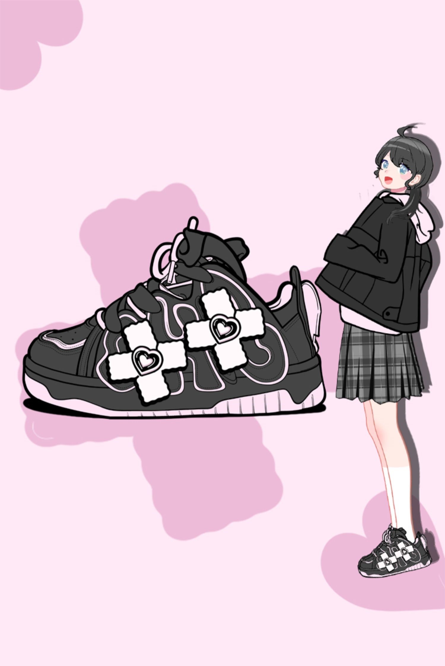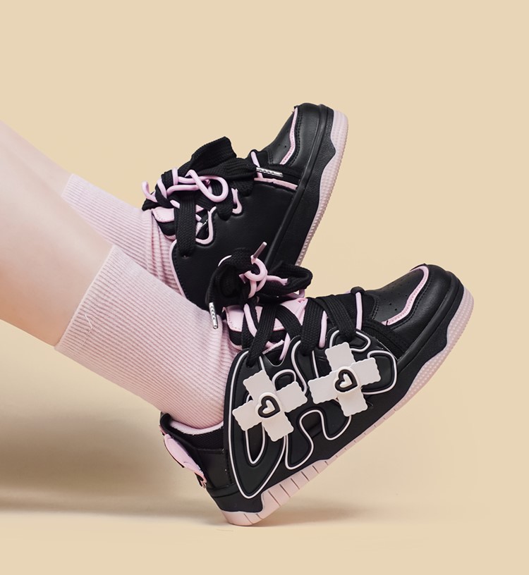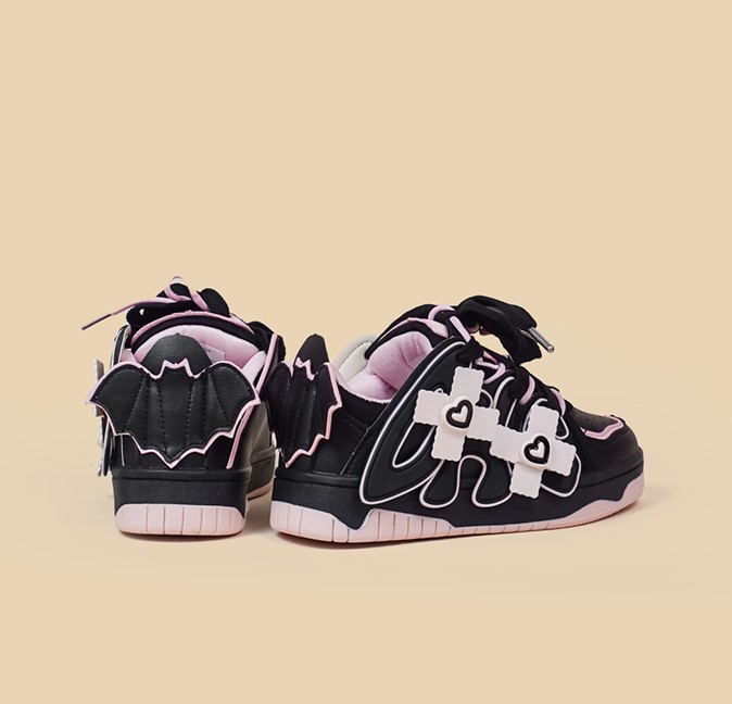 Dark Sweetheart Devil Wings Cross Thick Soles Girl Women Black Pink Sporty Sneaker Running Shoes