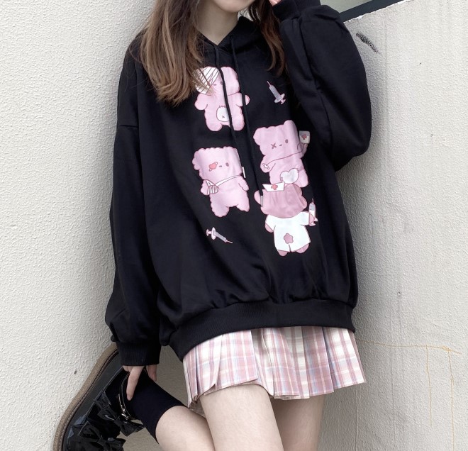Pink Nurse Bear Harajuku Streetwear E-girl Grunge Japanese Y2K Jacket Black Hoodie
