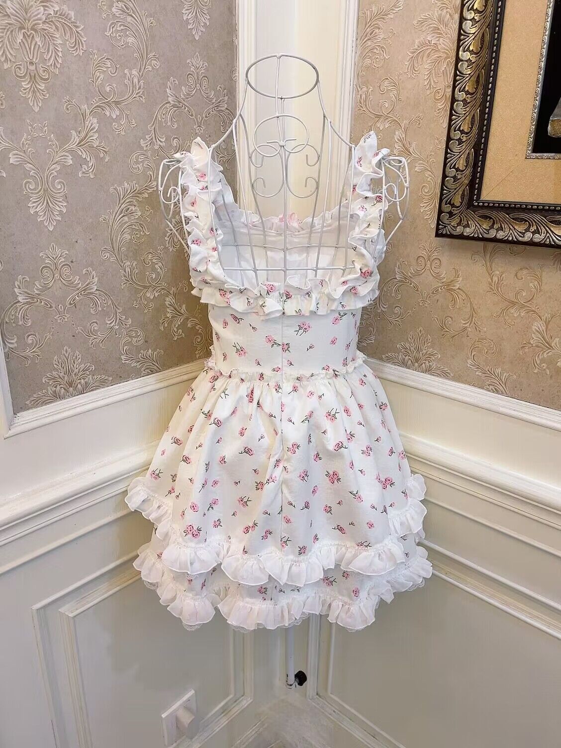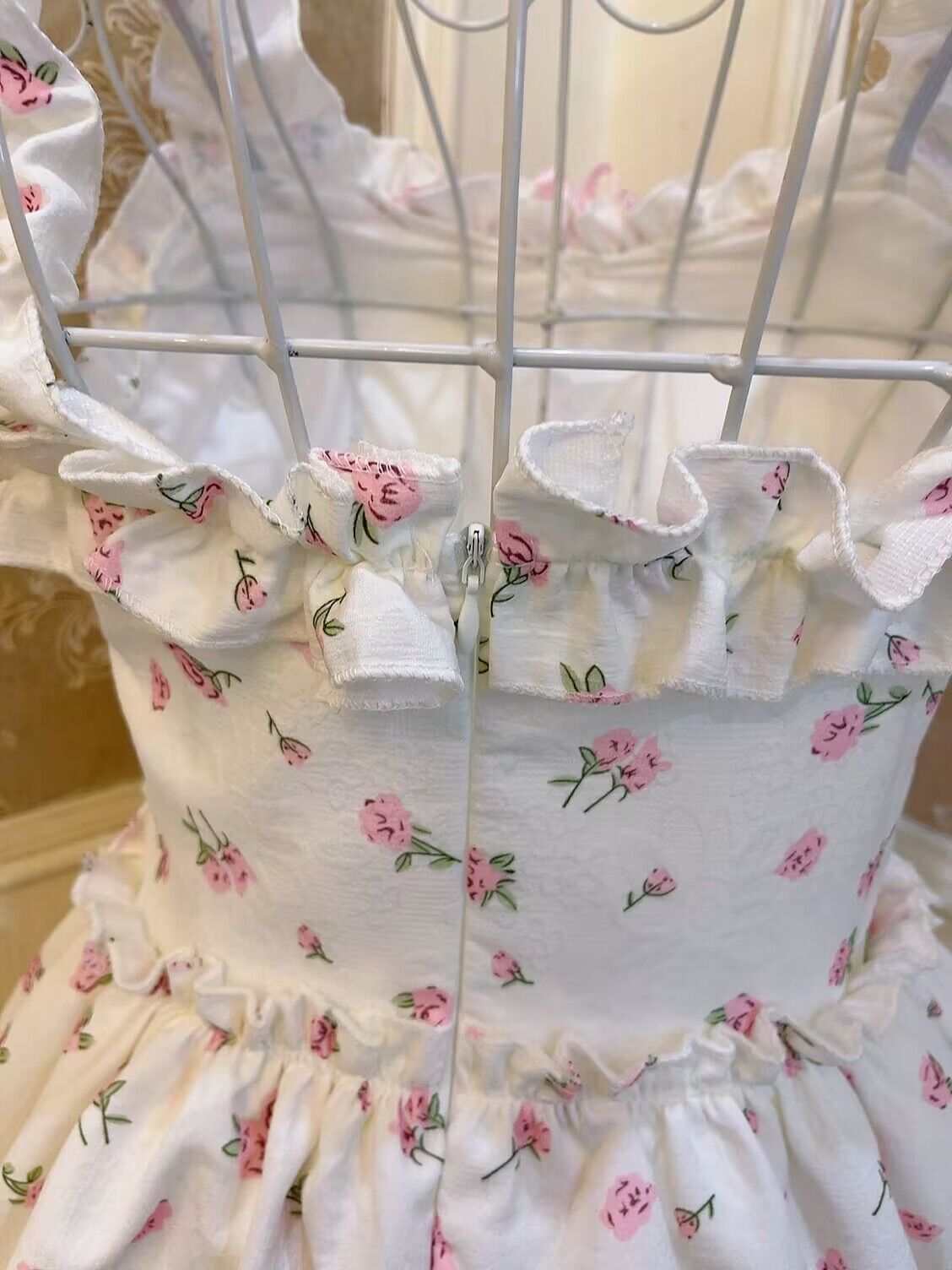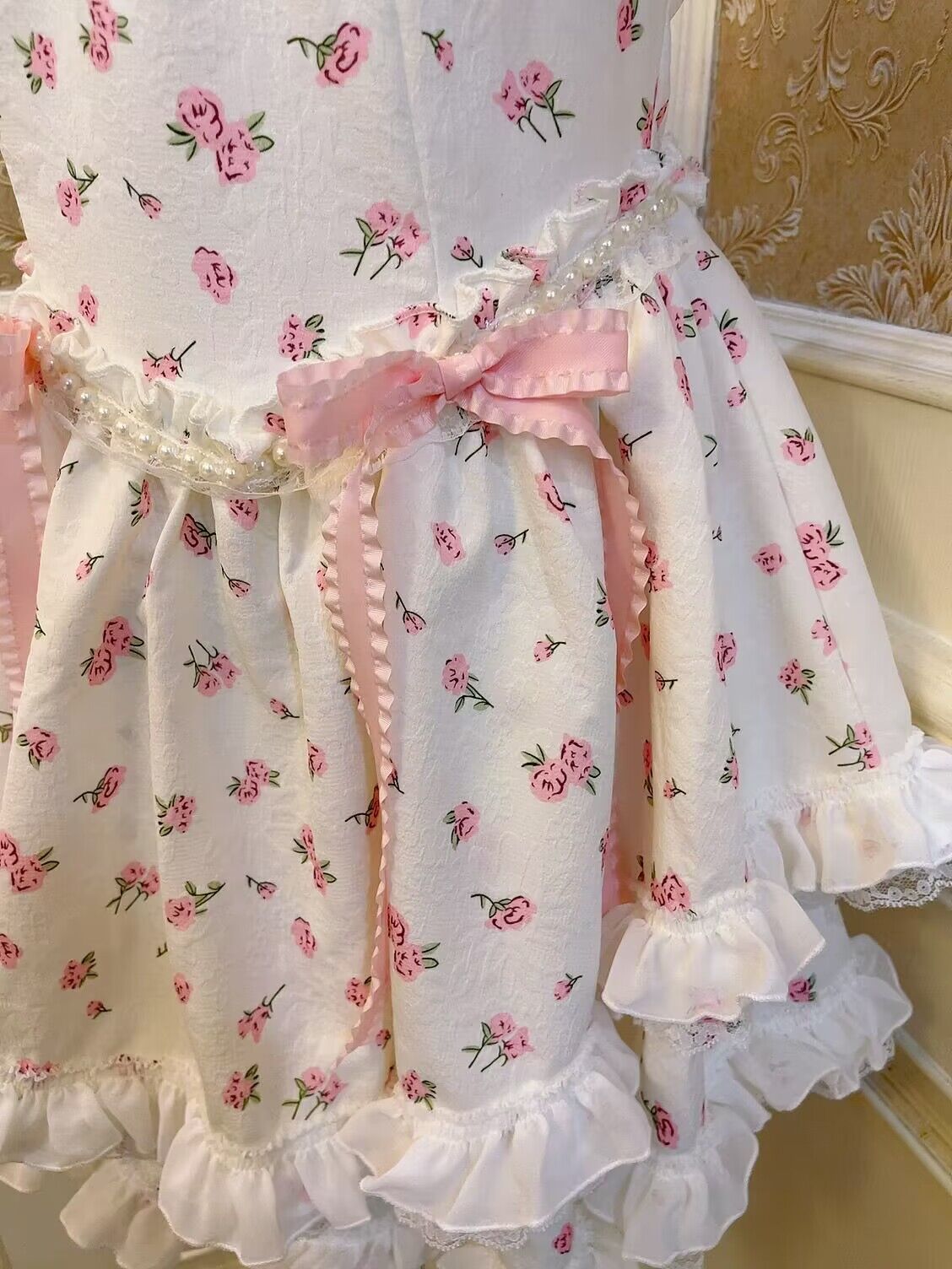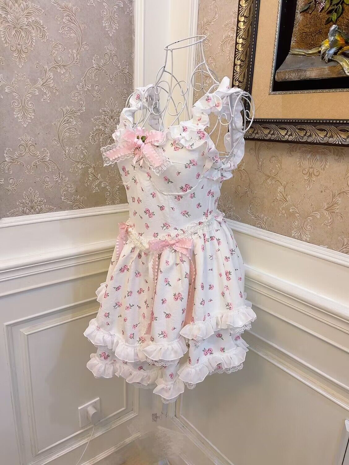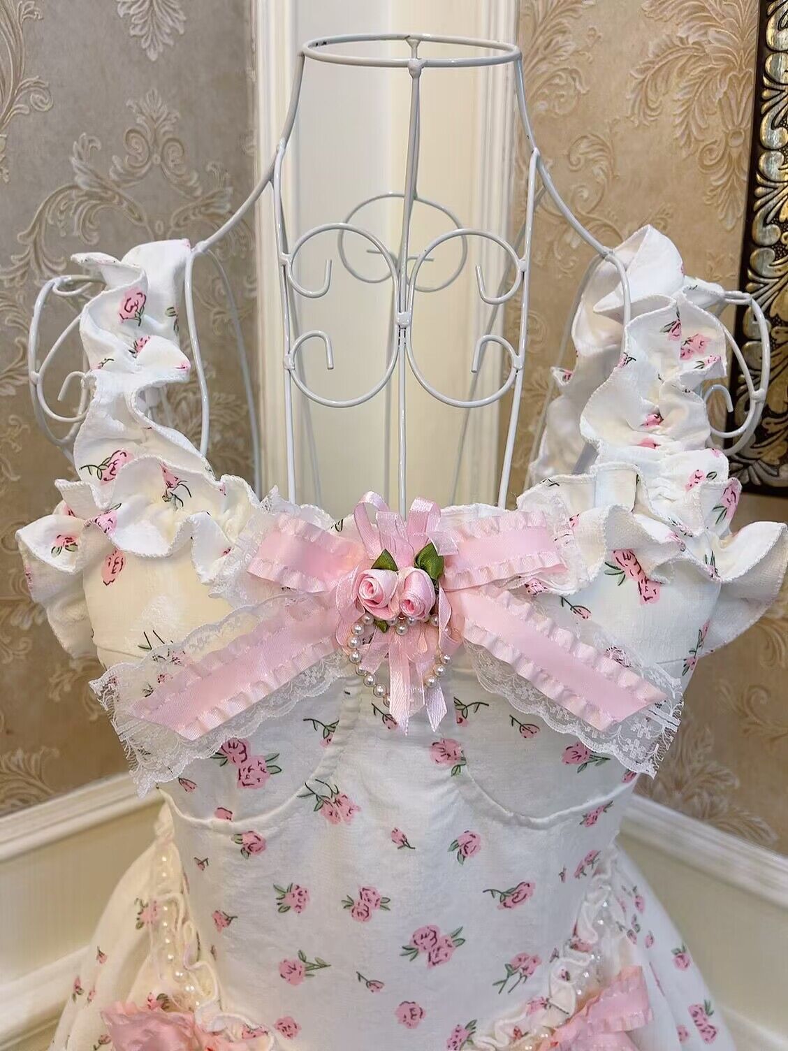 Vintage Coquette Rose Princess Bow Heart Flower White Pink Spring Summer Women Girl Strap Dress
