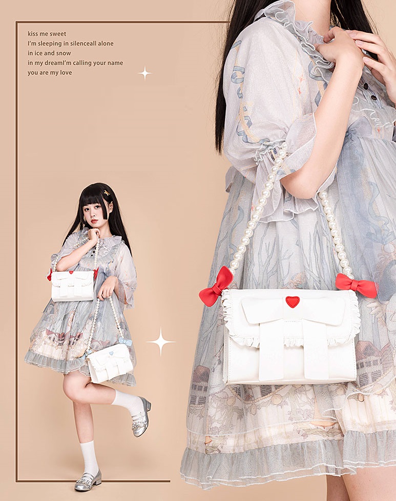 Cute Pearl Chain Bow Bowknot Red Blue White Messenger Bag