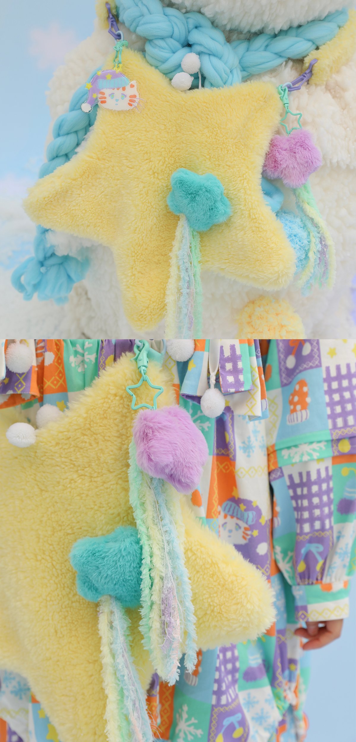 Y2K Pink Blue Yellow Star Fluff Plush 3D Bag
