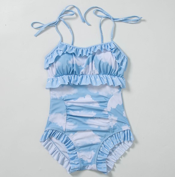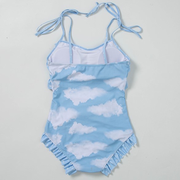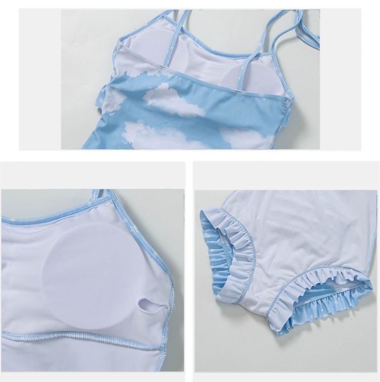 Baby Blue Cloud Pattern Women Strap Summer One Piece Swimsuit