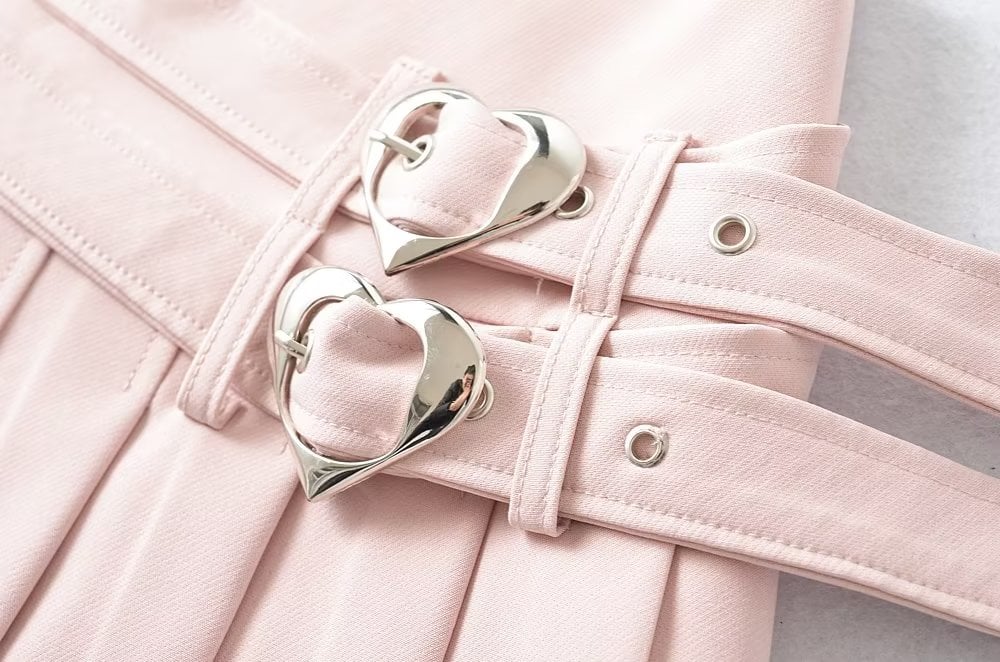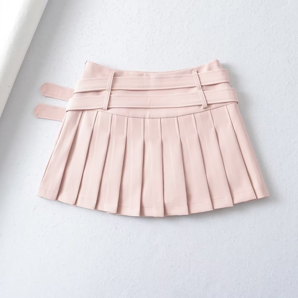 Pastel Pink White Black Cute Angel Double Belts Fresh Spring Summer High Waist Tennis Pleated Short Mini Skirt