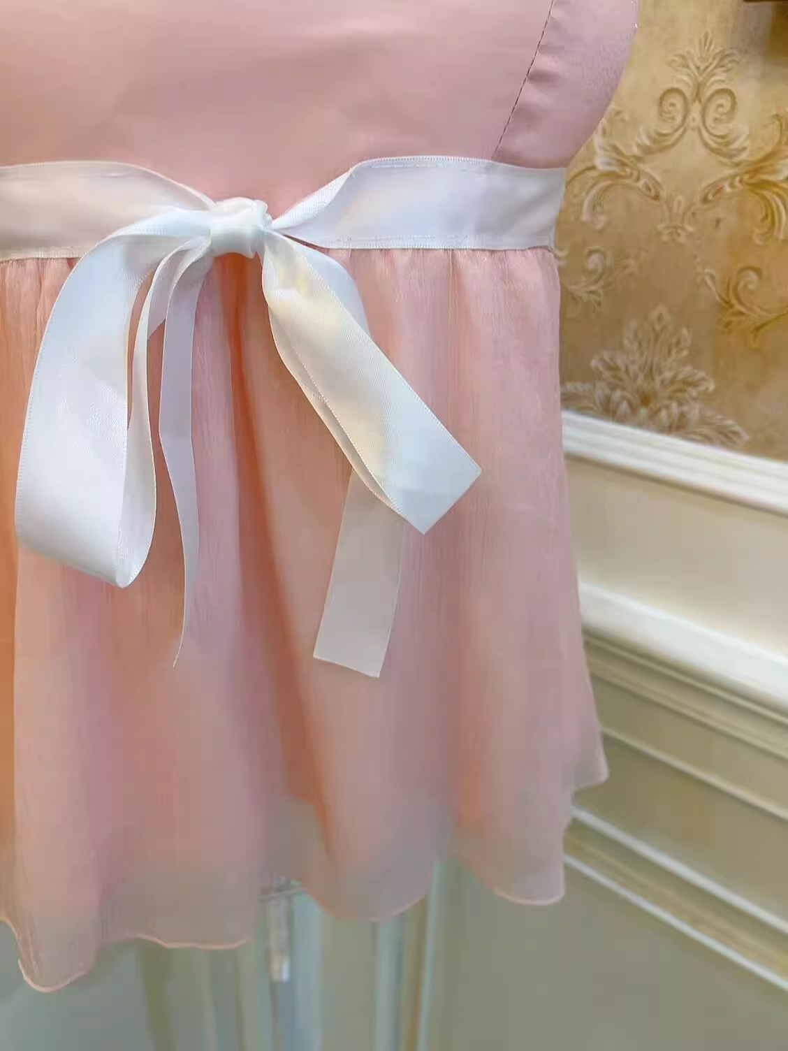 Sweetheart Princess Romantic Pink Vintage Coquette White Ribbon Strap Tank Top Camisole