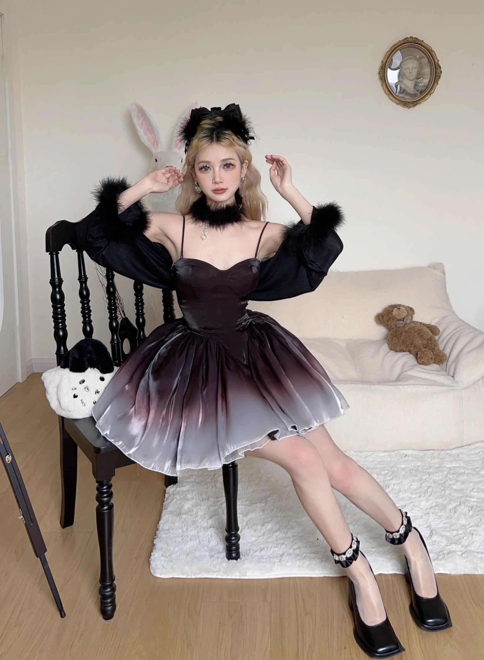 Purple Wine Black Gradient Fairy Girl Elegant Evening Party Prom Strap Dress