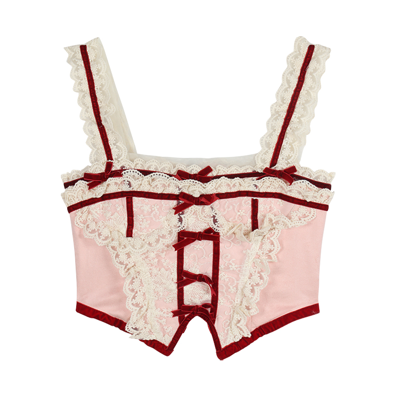 Strawberry Wine Red Pink Coquette Cute Sexy Camisole Tank Top Shirt & Skirt Two Piece Set