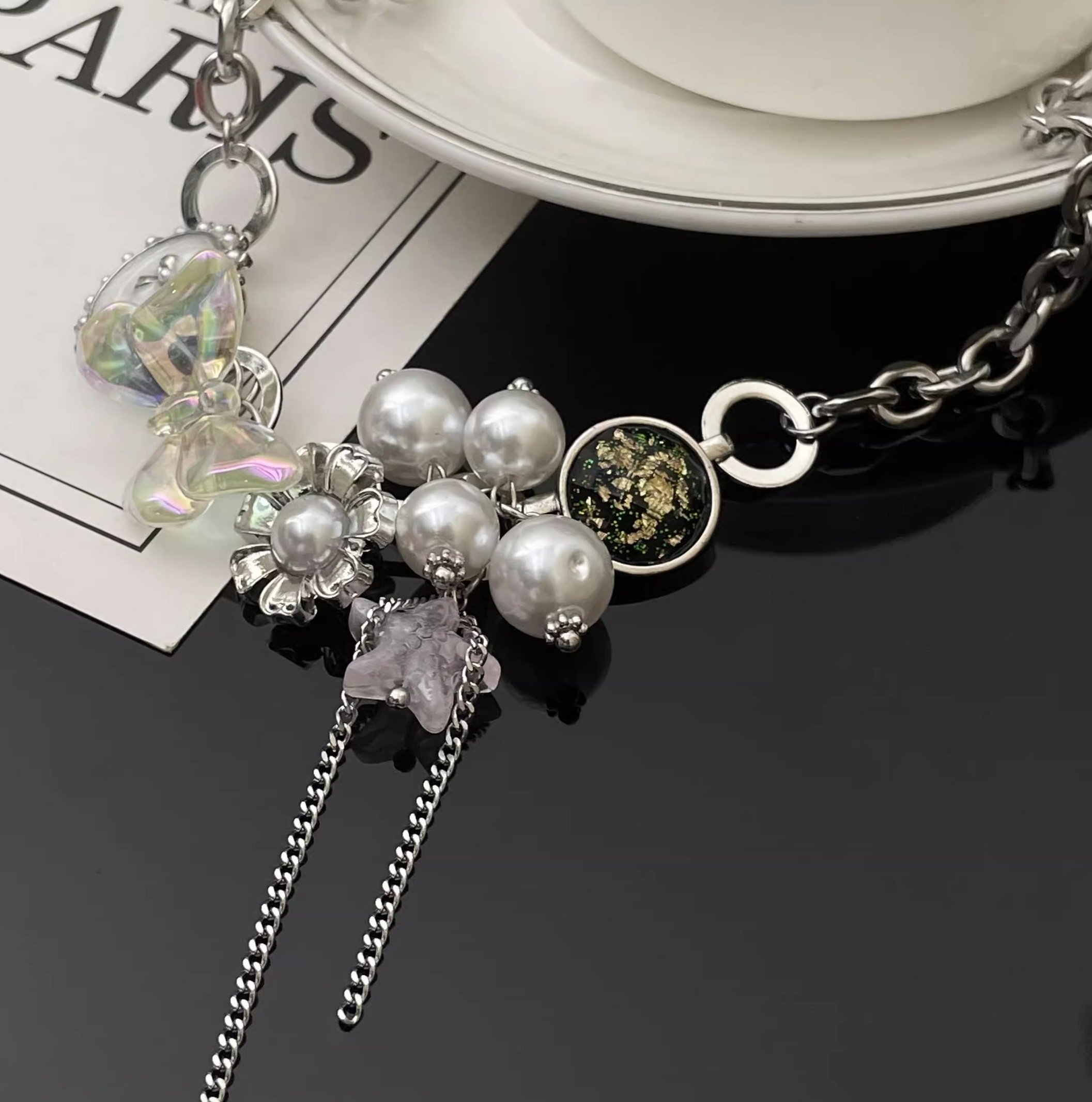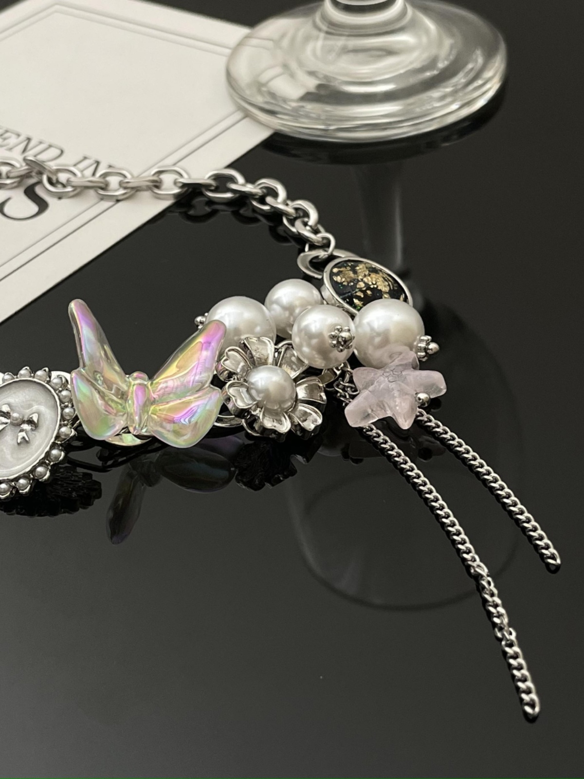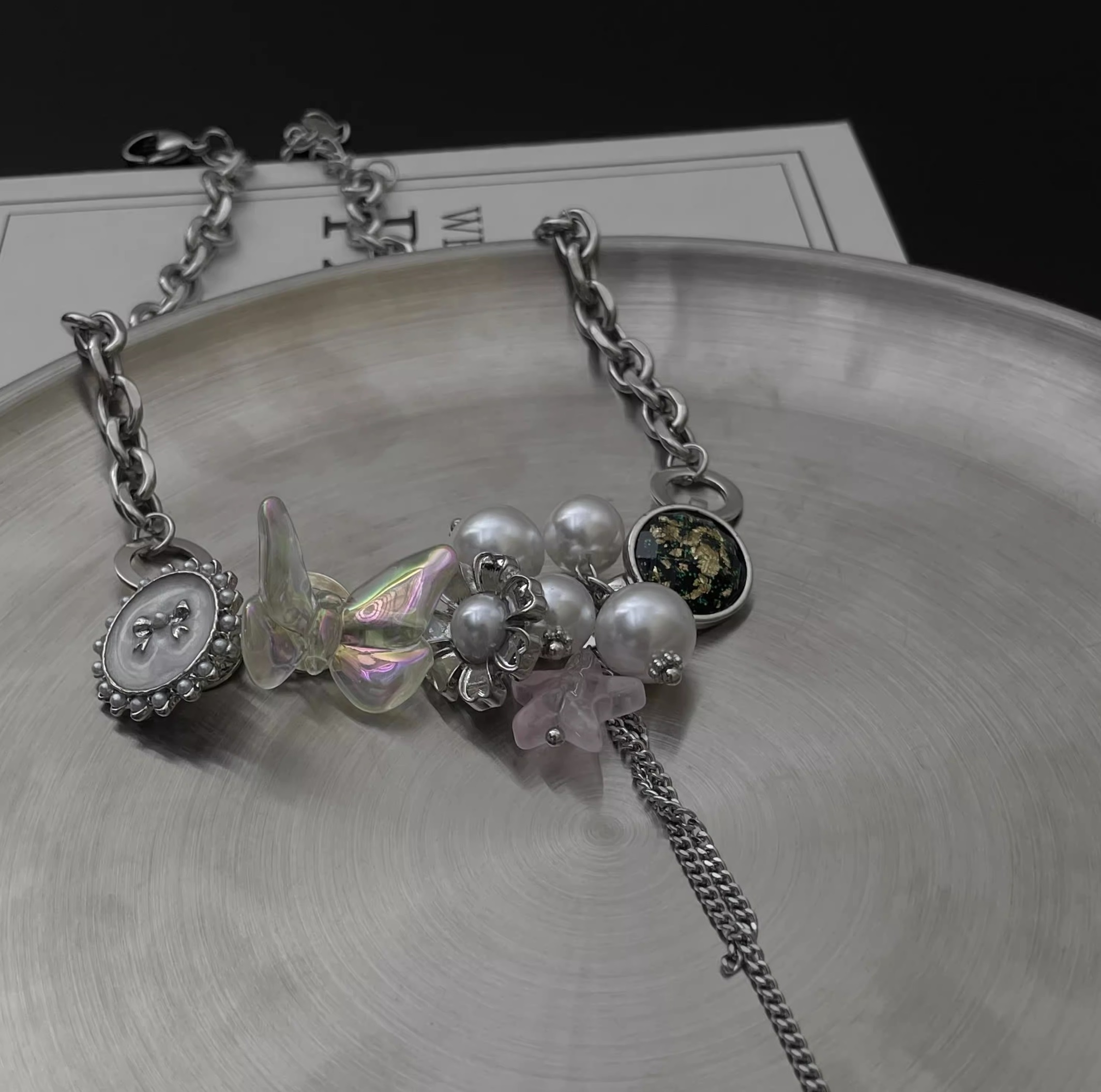 Pearl Colorful Butterfly Chain Pendant Necklace