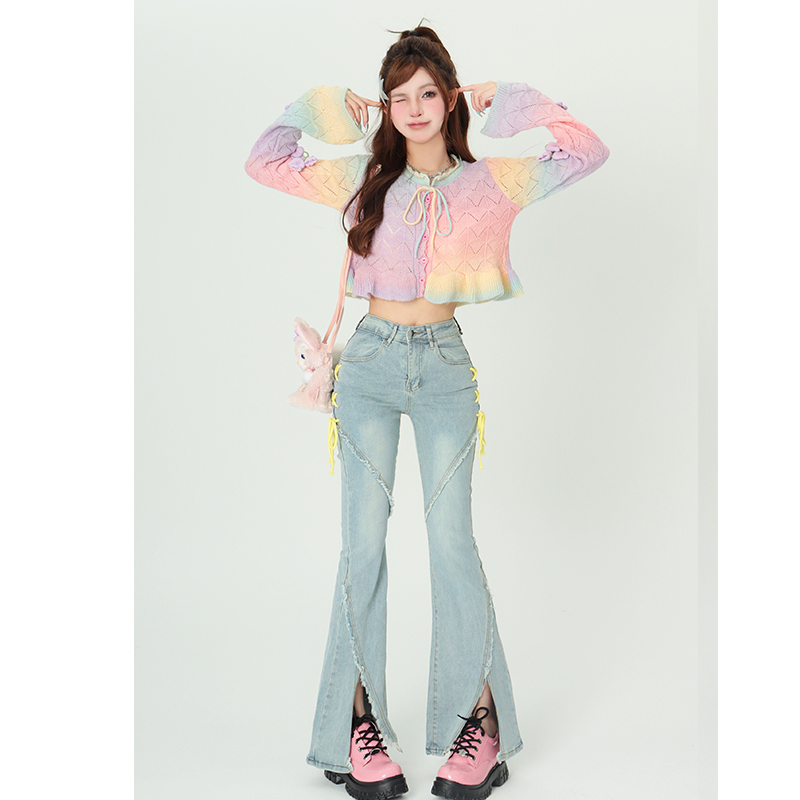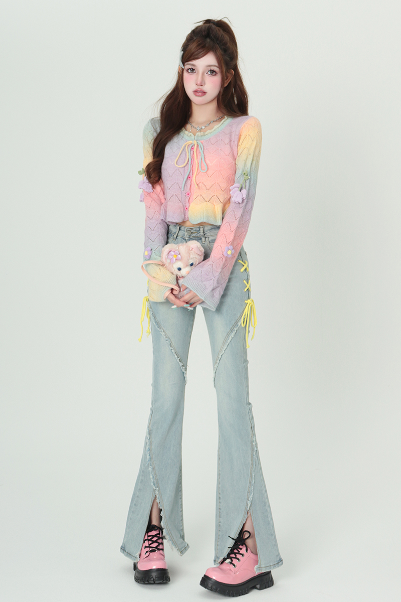 Bubblegum Soft Pastel Colorful Rainbow Knitted Sweater Cardigan