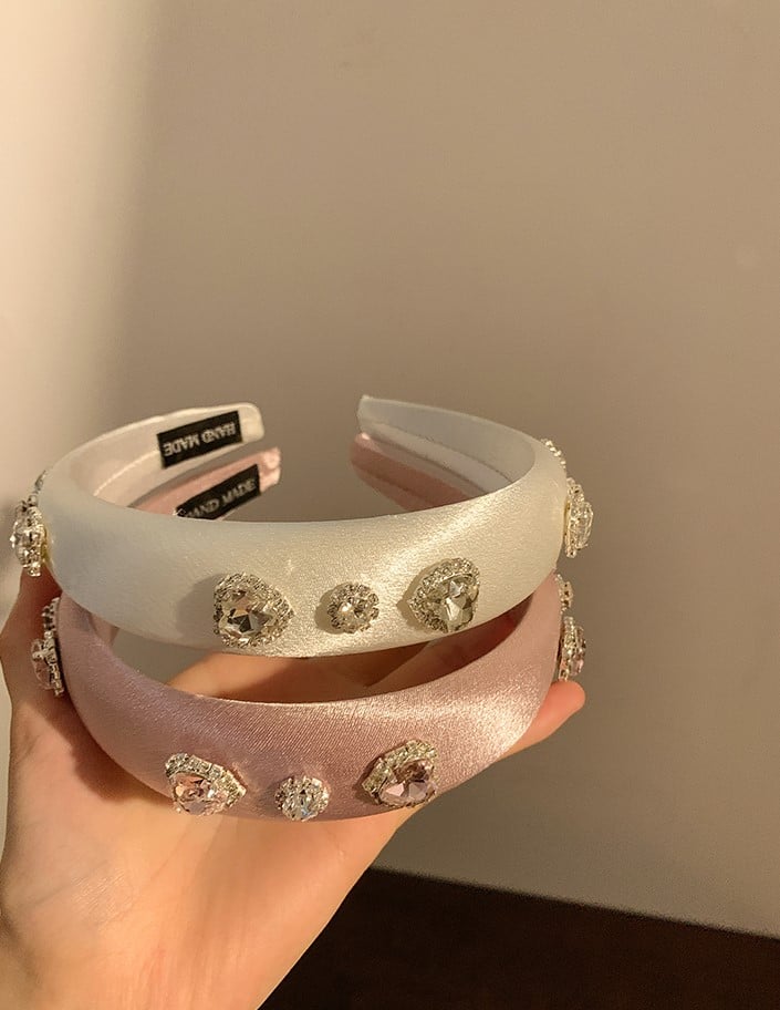 Sweet Girl Pink White Heart Jewels Decorated Hairband Headband Hair Accessories
