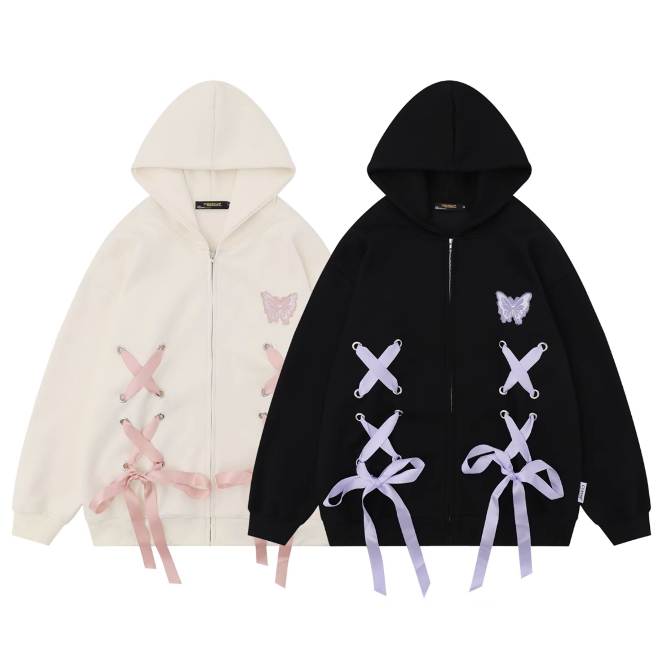Butterfly Bow Ribbon White Pink & Black Purple Hoodie Sweatshirt