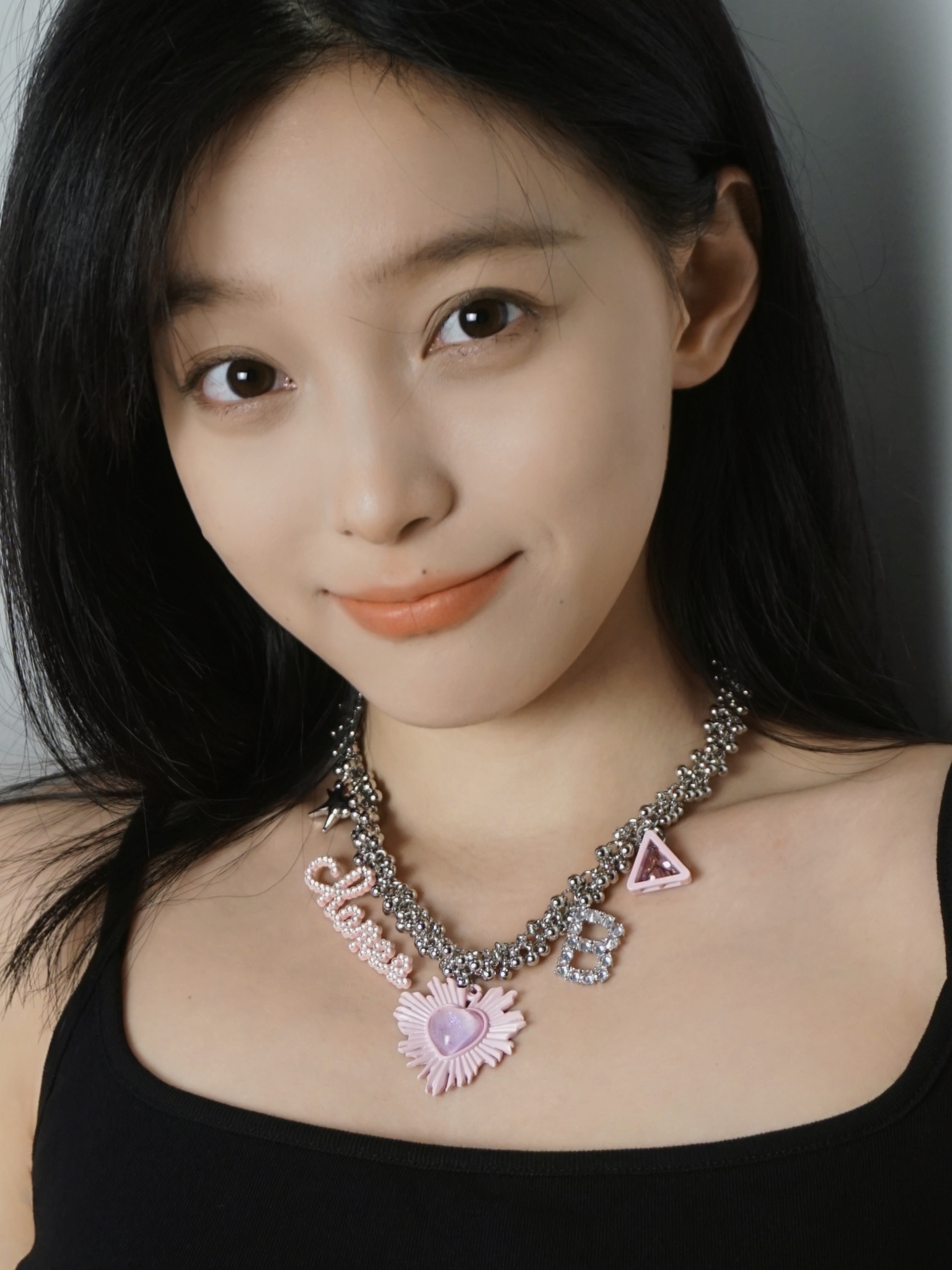 Y2K Retro Silver Chain Crystal Pink Blue Heart Pendant Necklace