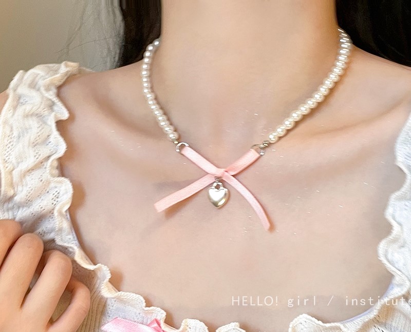 Run Away Princess Coquette Girl Heart Bow Ribbon Necklaces