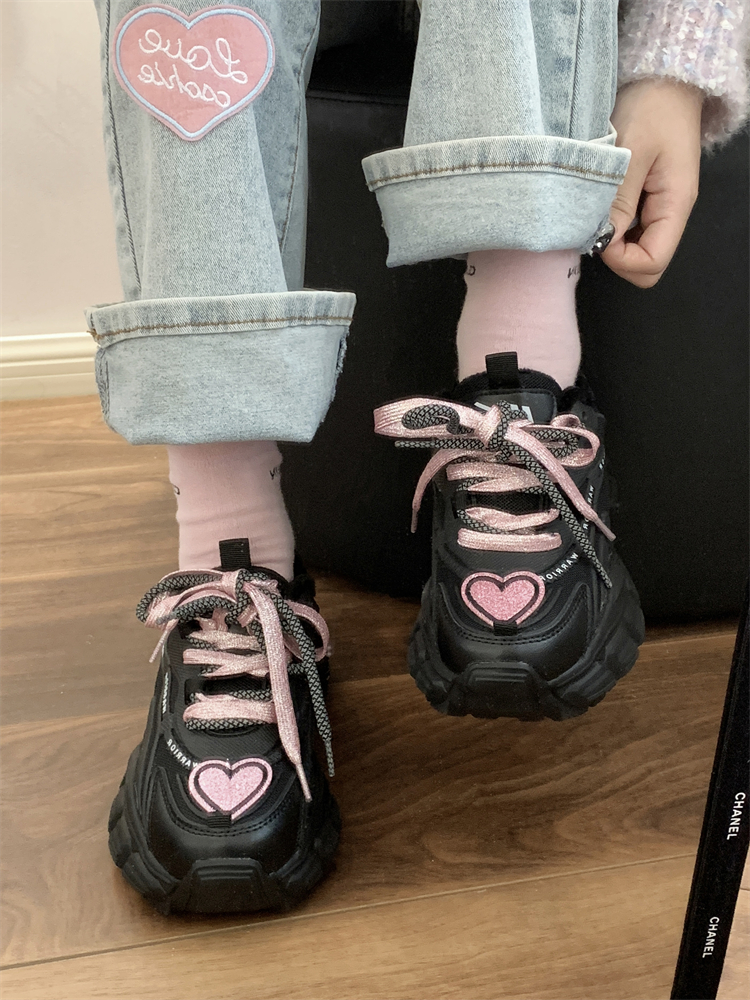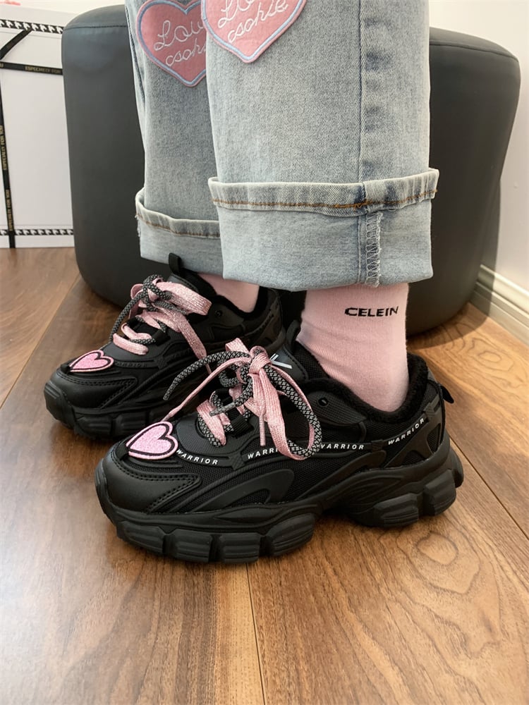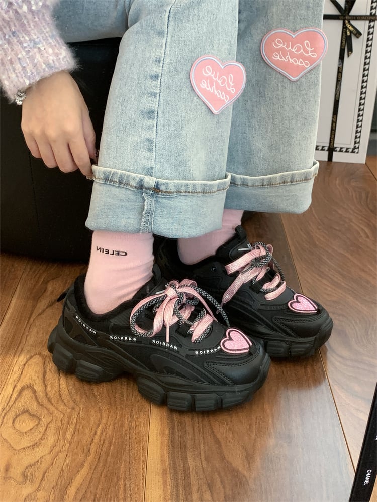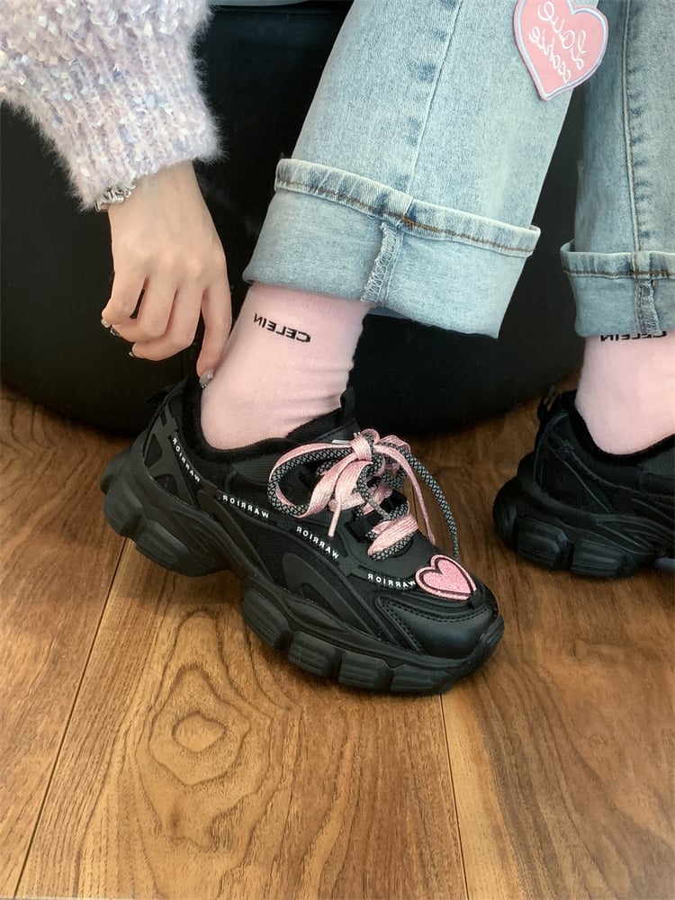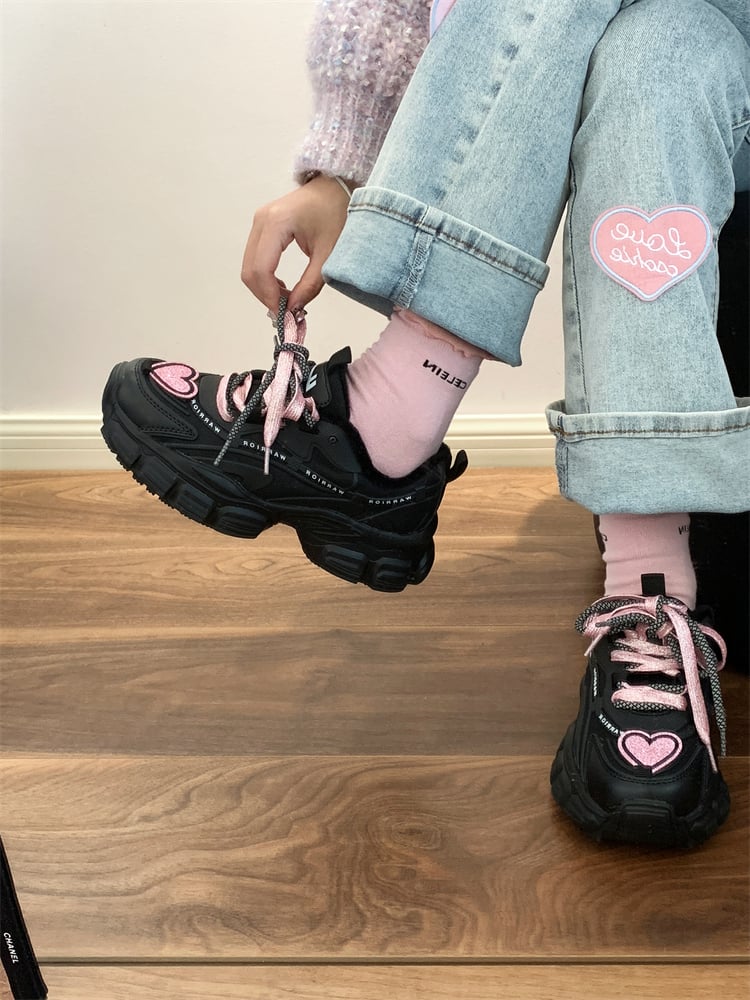 Kawaii Cute Black Pink Heart Y2K Thick Soles Black Sporty Sneakers Running Shoes